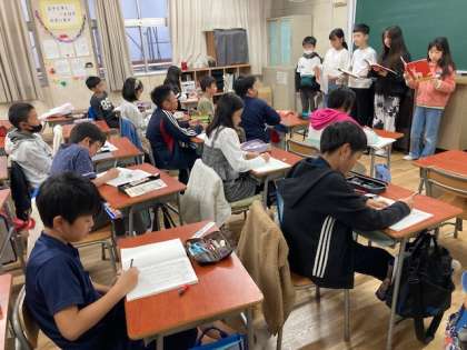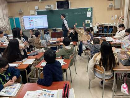 担任の先生と外国語(英語)の学習をしました。国に関するヒントをいくつか出し、「what country is this?」と友だちにたずねて国を当てるクイズをしました。しっかりと英語でできました。また、国語では友だちにおすすめの本を紹介しました。友だちの発表を聞いて、よかった点をノートに書きました。