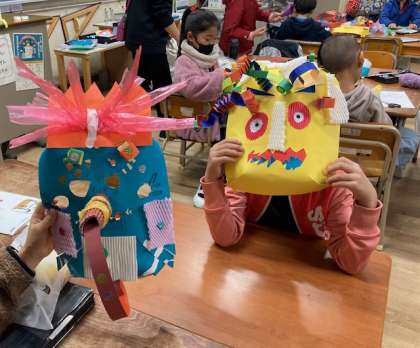 2年生は作品展に向けて、世界にひとつだけの仮面を作っています。ほぼできあがってきました。ぜひ、ご覧ください。個性