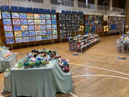 21日(火)と22日(水)は、9時45分から12時25分、23日(祝・木)は9時45分から15時まで、作品展を行います。子どもたちが心をこめて作成した絵画と立体作品を展示しています。今日は立体作品を搬入しました。ぜひ、ご観覧ください。