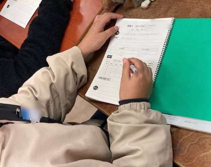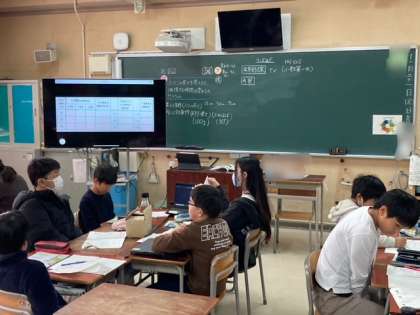 5年生が理科「ふりこのきまり」を学習しています。今日は、ふりこの長さを変えると一往復する時間は変わるのかを実験して、実験結果をまとめ考察しました。