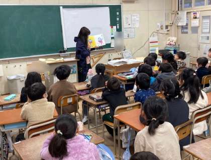 図書館ボランティアの方に来ていただき、絵本の読み聞かせをしてもらいました。学年に応じた絵本を選んでいただき、子どもたちは楽しく絵本の世界へ入っていました。