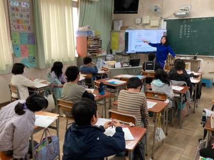 4年生が算数「分数をくわしく調べよう」を学習しました。1めもりが1/3や1/4で表された長さを分数で表しました。
