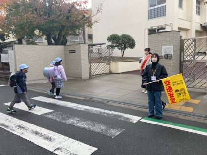 キリスト教短期大学の学生さんが、登校指導をしてくれました。あいさつ指導、交通安全、子どもたちの様子の観察の3点をポイントにして正門に立ちました。ありがとうございました。