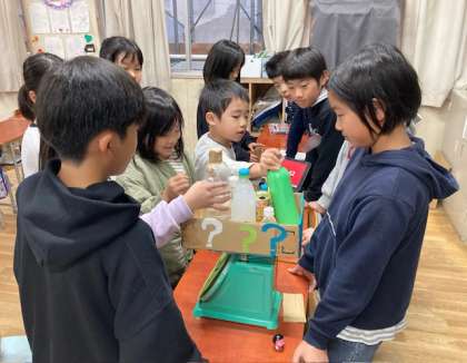 5年生のお店は、グラムぴたり賞、射的、リメンバーゲームです。グラムぴたり賞はくじを引き、決められた重さになるようにペットボトルをはかりに入れます。ぴたり賞が4組ありました。そのうち先生が3人です。