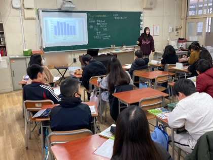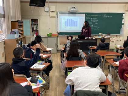5年生が社会科「ものづくりの技術や課題について知ろう」を学習しました。製造業で働く人が減っていることをグラフから読み取り、なぜ減っているかを考えました。