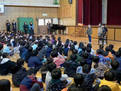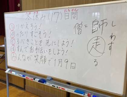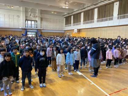2学期終業式を講堂で行いました。大阪市歌を歌った後、校長先生から冬休みの過ごし方のお話がありました。その後、3年生の代表児童が2学期がんばったことを発表しました。生活指導担当の先生からお金の使い方やゲームに関する注意がありました。最後に元気よく校歌を歌いました。