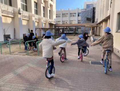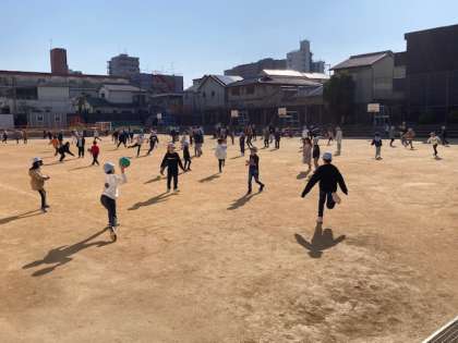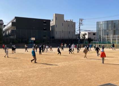 朝は寒さを感じましたが、休み時間に運動場へ行くと陽ざしを浴びて気持ちよく遊ぶことができました。たくさんの児童が運動場で楽しく遊び、また学習園前では一輪車をする児童もいました。久しぶりに学校に子どもたちの明るい声が響きました。