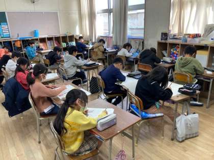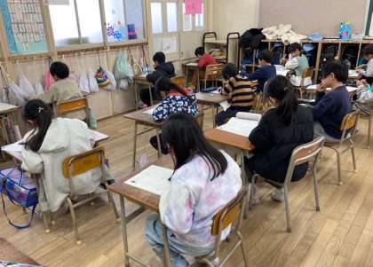 2年生がしっかりと学習したかけ算のテストをしました。九九をしっかりと覚え、かけ算の考え方を使って式を作り答えを導き出しました。九九やかけ算は、2年生の学習でしっかりと身につけたい単元です。