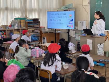 2年生が発育測定の前に、保健室の先生からウイルスに関する保健指導を受けました。丁寧な手洗い、咳エチケット、ウイルスとたたかう体づくりについて学びました。ウイルスに感染しないように今日学んだことを実践してほしいです。