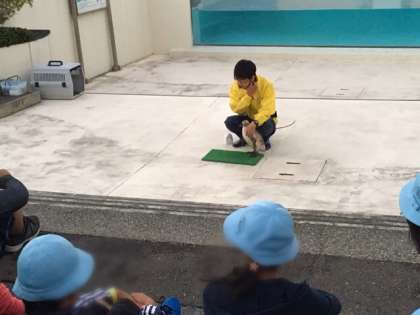 飼育員さんにコツを教えてもらって