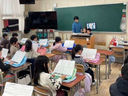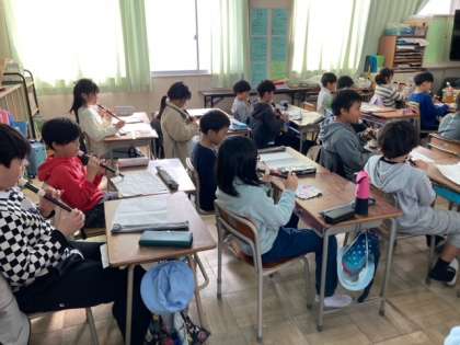 3年生が音楽を学年でしました。鍵盤ハーモニカ、リコーダーのパート別に教室で練習しました。曲は「明日があるさ」です。6年生の卒業を祝う会で披露します。お楽しみに。