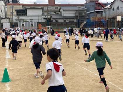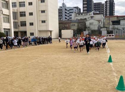 本日で耐寒かけ足が終了です。毎日3学年ずつ2週間、耐寒かけ足をしました。耐寒かけ足カードに走った周の数を色塗りしています。何枚もカードを使っている児童もいます。一生懸命に走りました。