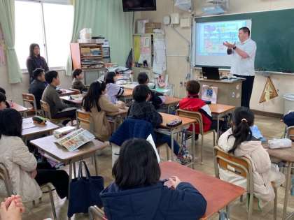 4年生がC-Netの先生と一緒に英語に触れ合いました。