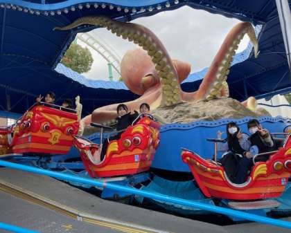 色々はアトラクションを楽しんでいます。みんな笑顔満開です。
