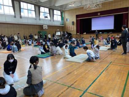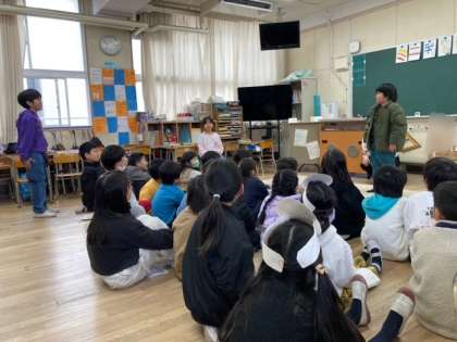 2年2組と4年生が学習参観をしました。2年2組はミニ学習発表として各グループで発表しました。4年生は体育館で学年合同参観をしました。百人一首をしたり合唱、合奏をしました。