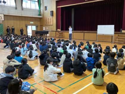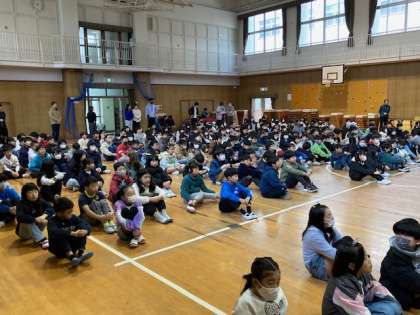 体育館で児童朝会をしました。1月度の読書表彰をしました。今回は43名の児童が読書目標を達成しました。校長先生からは三寒四温に関するお話がありました。 体調に気をつけて元気に今週もがんばりましょう。