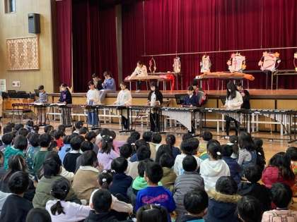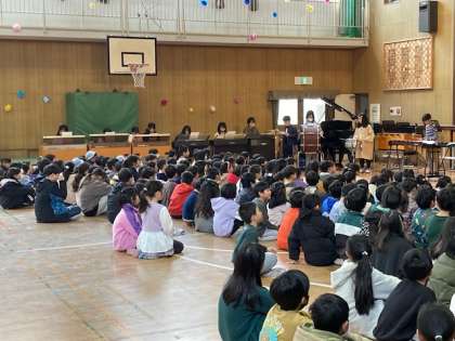音楽クラブがクラブ活動で練習してきたYOASOBIの「アイドル」という曲を合奏しました。人気の曲なのでみんな演奏を楽しみました。