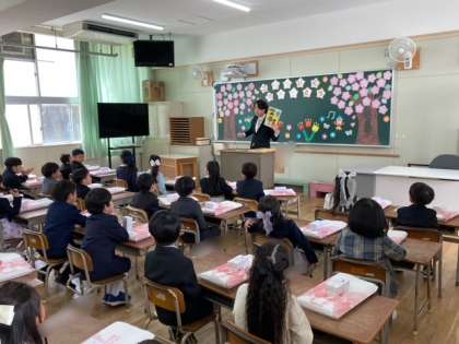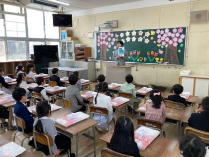 入学式では、新2年生が歓迎の歌や演奏、呼びかけをしてくれました。新1年生が目を輝かせて見ていました。式後は、教室に戻り担当の先生からお話を聞きました。さあ、楽しい学校生活が始まります。がんばっていきましょう。