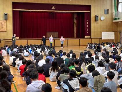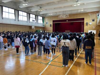 令和6年度1学期始業式を行いました。全校児童460名でスタートします。始業式では、校長先生から「進」という漢字を使って、鳥のように前へ上へ大きく進んでいきましょうとお話がありました。離任教職員と新担任教職員の紹介の後、担任等の発表がありました。最後は、6年代表児童が決意の言葉を発表しました。