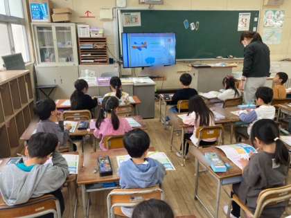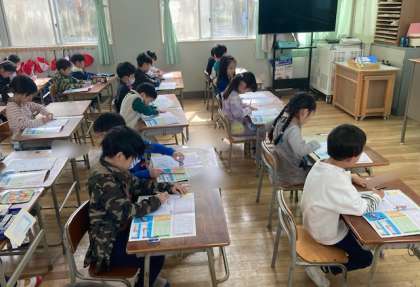 1年生がひらがなノートを使って、自分の名前を書いたり、なぞり書きをしたりしました。字を書くときの姿勢をきちんとして、しっかりと書くことができました。