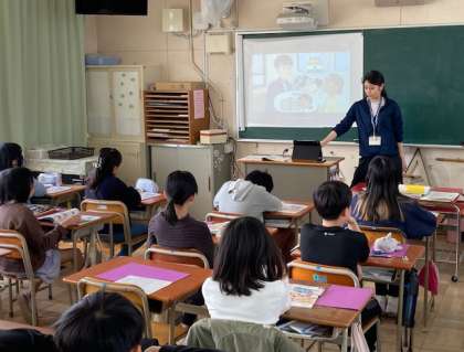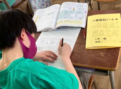 6年生の家庭科は担任ではなく専科の先生が授業をします。「生活の時間をマネジメントしよう」を学習し、生活時間表を作成しました。また、教科外国語(英語)は学級担任が行います。映像を見ながら会話を聞いてどんな話をしているか考えました。