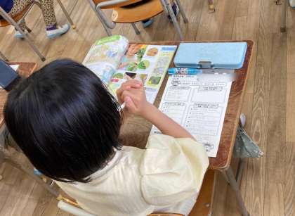 2年生が生活科「生きものをさがそう」を学習しました。今日は生き物をさがす計画をワークシートに書きました。