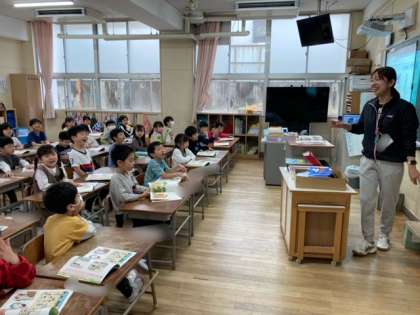 2組は生活科「がっこうせいかつ」を学習しました。あいさつの仕方を学びました。