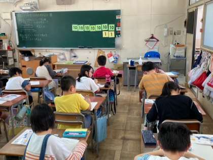 4年生の学習参観は、「割り算のしかたを考えよう」をしました。72÷3の計算の仕方を10のたばと1のたばで考えたり、図で考えたりしました。
