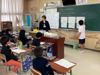 5年生の学習参観は、1組は算数「直方体や立方体の体積」、2組は社会「世界の中の国土」、3組は国語「敬語」をしました。5年生は教科担任制なので、担任ではない教科担当の先生が授業をしました。
