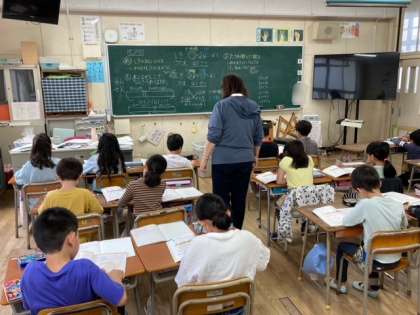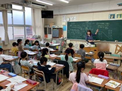 2年生が、算数「たし算では式の前と後ろを入れ替えても答えは同じ?」を学習しました。たされる数とたす数を入れ替えて計算しても答えは同じということがわかりました。