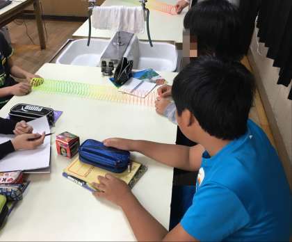 地震の仕組みを教えてもらい、最後には揺れを回転の力に変える道具を作りました。不思議なことの連続で子供たちは大変盛り上がっていました。