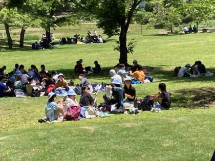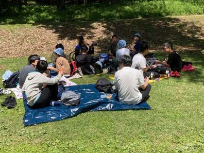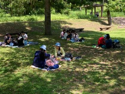 甘樫丘の芝生広場でお弁当を食べました。甘樫丘は、蘇我氏の邸宅があったところです。