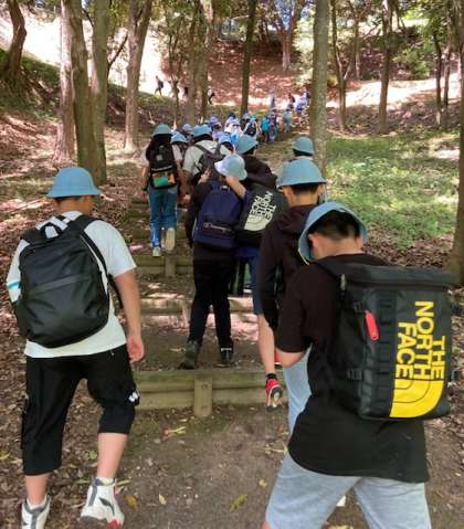 甘樫丘から万葉の植物園路を通って橿原神宮前駅をめざしました。予定通り無事に学校へ戻りました。自然と歴史を感じながら、たくさん歩きました。