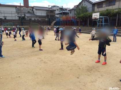 1学期は、短なわとびでしたが、2学期は長なわとびに挑戦します。
