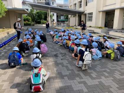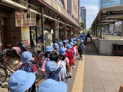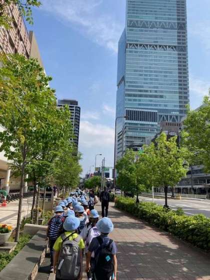 2年生が遠足で天王寺動物園へ行きます。学校から歩いて天王寺動物園を目指しています。