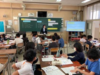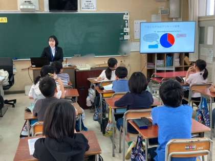 5年生が養護教諭になるために実習に来ている実習生と一緒に保険学習をしました。