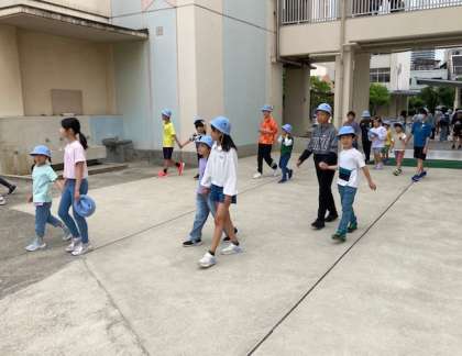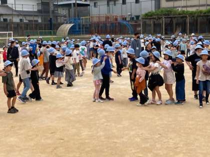 今日の児童集会はじゃんけん列車です。集会の前に6年生が1年生を迎えに行き、スマイル班ごとに並びました。じゃんけん列車では楽しく活動ができました。