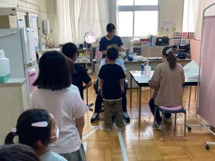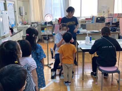 全学年で眼科検診をしました。治療が必要な場合は、速やかに受診してください。