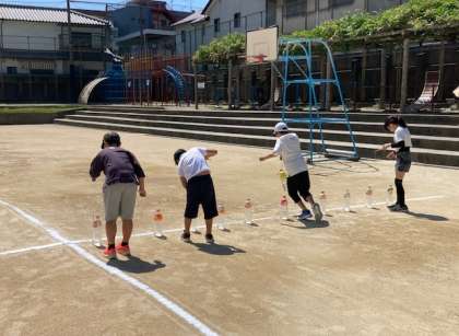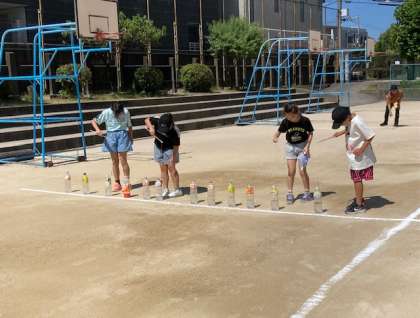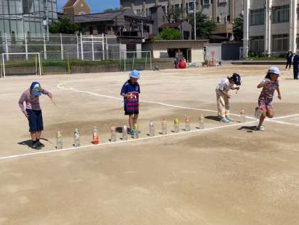 高学年のビン釣り競争です。学校の運動会では行わない競技です。とても楽しいですね。