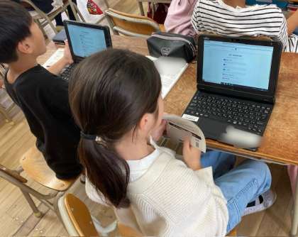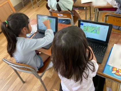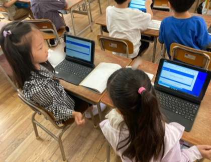 今日は1、2年の学級でオンライン学習教材を登録し、ショートカットを作りデスクトップにはりつけました。すぐ使える状態になりました。早くできた1年生はデジタルドリルに挑戦しました。