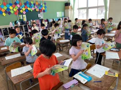 1年生が国語「さとうとしお」を学習しました。わかることに線をひいて、ちがいを見つけました。最後は、みんなで音読しました。