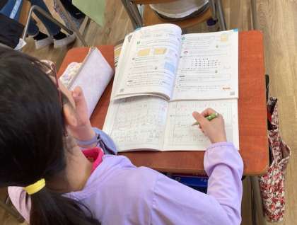 算数は、計算のきまりを使って工夫して計算する練習問題をしました。