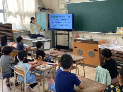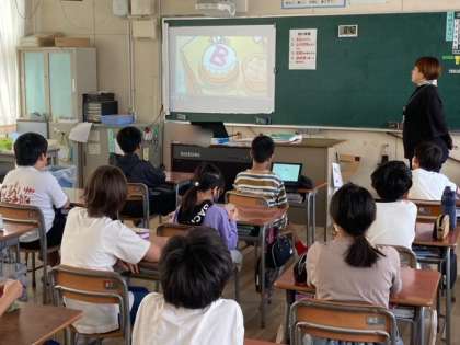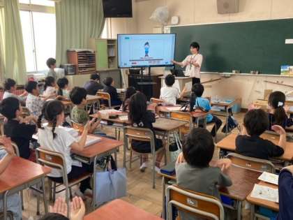 水曜日の朝は10分間のイングリッシュタイムです。音声と映像を活用して、楽しく英語に触れ合うように取り組んでいます。