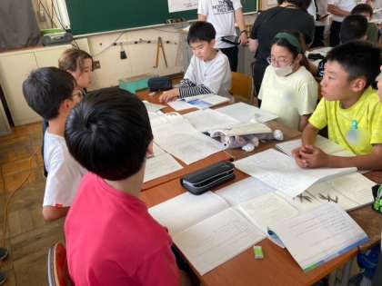 6年生は「風切るつばさ」を学習しています。今日は校内研究授業として行いました。クルルの心情が変化した理由を考えました。自分の考えをしっかりとノートにまとめ、グループで話し合いをしました。 話し合いで深まったことを全体で交流しました。