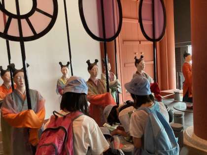 大阪歴史博物館では、奈良時代の宮廷の儀式の様子、江戸時代の大阪の様子などを見学しました。また、10階から難波の宮跡を見ました。