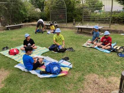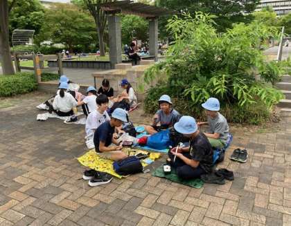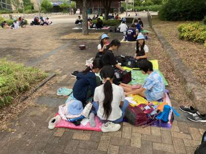 大阪歴史博物館見学の後、博物館前でお弁当を食べました。