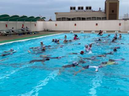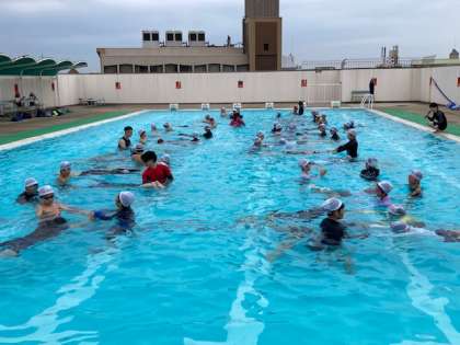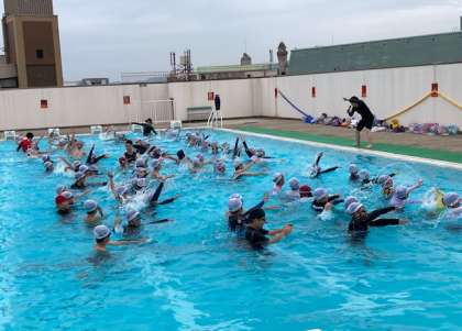 今日から水泳学習が始まりました。音楽に合わせて準備体操をして、水なれをしました。クラゲ浮き、大の字浮き、ふし浮の練習をしました。楽しく水泳学習ができました。