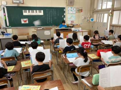 今日の音楽は、音楽専科の先生に来てらって、校歌や鍵盤ハーモニカの練習をしました。校歌の歌声がすてきでした。