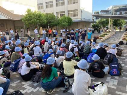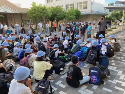 出発式では、みんなで決めた林間学習のめあて「ルールを守り、みんなで仲良く協力して思い出に残る林間学習にしよう」を確認しました。