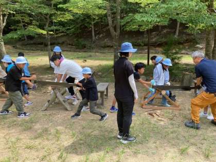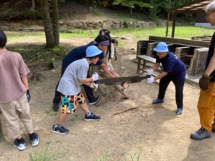 だんだんとうまく切れるようになりました。切った丸太は紙やすりできれいに仕上げました。